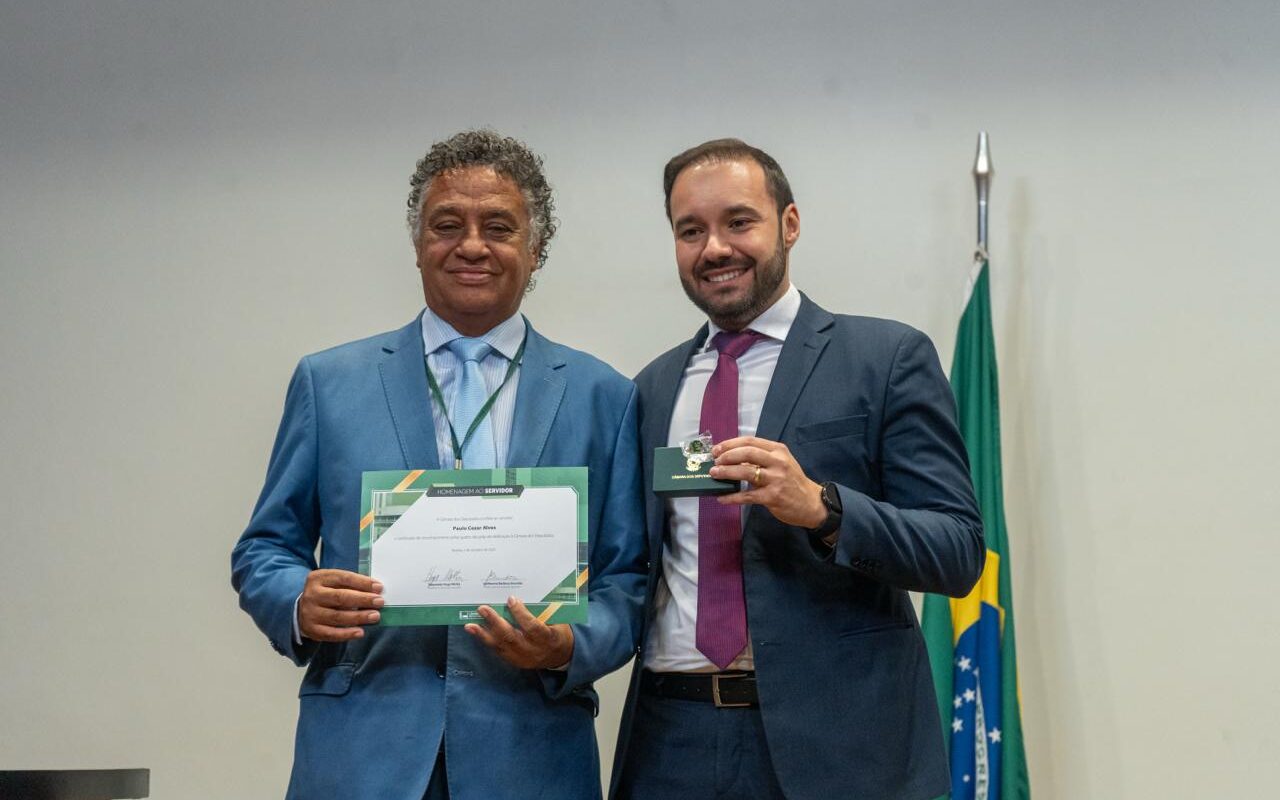 Entre os homenageados esteve o secretário-geral do Sindilegis, Paulo Cezar Alves. Servidor da Câmara há 40 anos, ele subiu ao palco para receber o certificado e o bóton das mãos do diretor-geral. Emocionado, destacou sua trajetória: “Fico honrado em ser um dos homenageados. São muitos anos de dedicação a essa Casa que escolhi estar. Conheço cada canto desse lugar e aqui construí parte da minha história. É uma honra servir à Câmara dos Deputados e, consequentemente, ao povo brasileiro”, declarou.