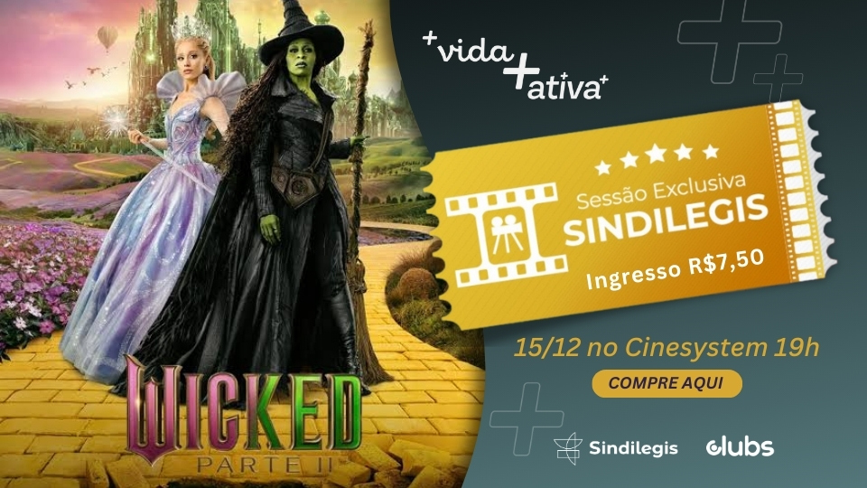 O Sindilegis convida seus filiados para celebrar o encerramento da programação anual do CineLegis com uma sessão exclusiva de Wicked: Parte II. A exibição acontece nesta segunda-feira (15), na sala 6 do Cinesystem Casa Park, às 19h.