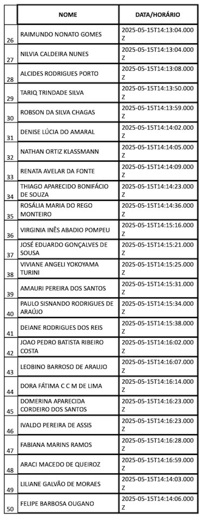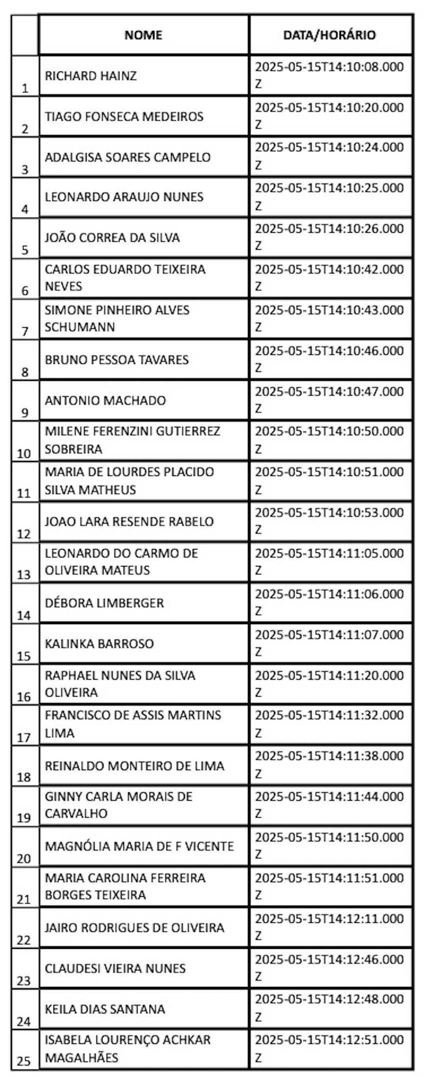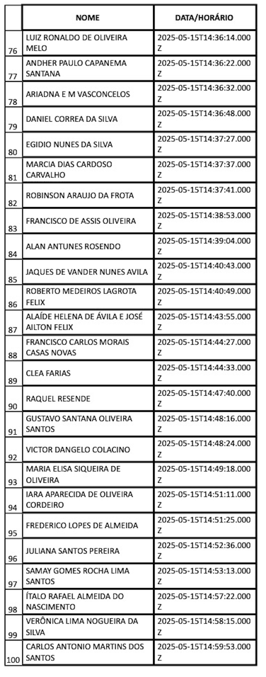Confira a lista completa com os 100 primeiros inscritos: